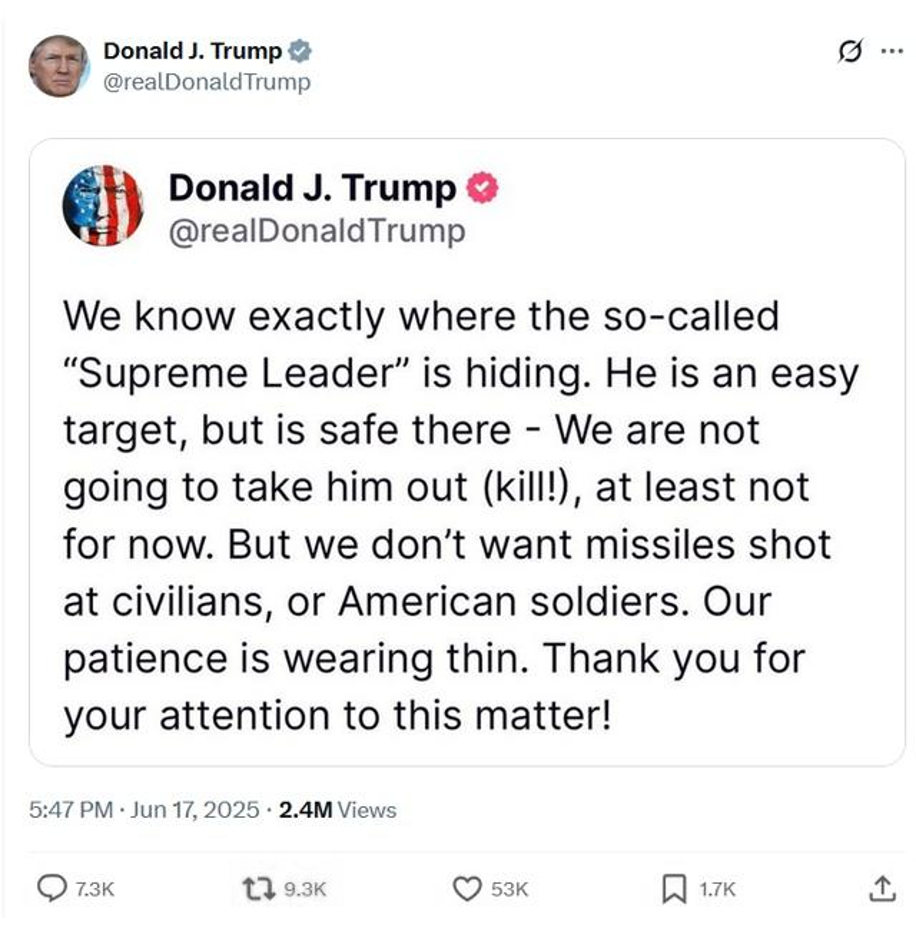 Unprecedented cyberattacks targeted Iranian financial infrastructure, including Bank Sepah and Bank Pasargad, and one hundred million dollars were stolen from the Nobitex cryptocurrency exchange. Meanwhile, Donald Trump, the President of the United States, who had been engaged in nuclear negotiations with Iran just days earlier, launched a social media campaign threatening Iran. His unprecedented statements about “unconditional surrender” and the “immediate evacuation of Tehran” sought to influence the psychological landscape of the war in Israel’s favor, effectively acting as a participant in the conflict’s information and psychological operations.